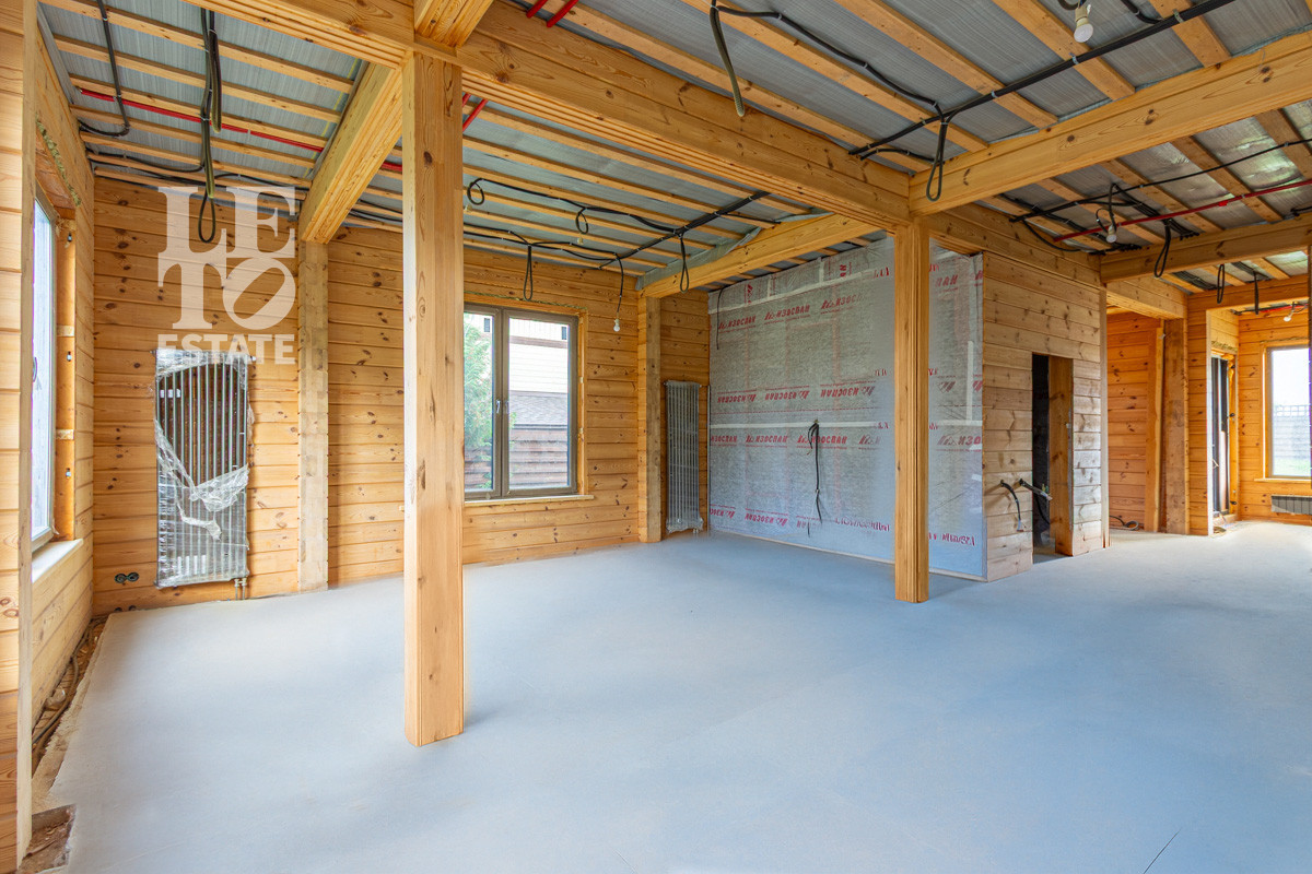 Дом построен в 2024 году: уникальный проект из клееного бруса с мягкой кровлей. Высота потолков 3,2 м создает ощущение простора и света. Все черновые работы полностью завершены, достигнута высокая степень готовности. Дом подключен ко всем коммуникациям: электричество 15 кВт, центральное водоснабжение и септик. Для Вашего комфорта смонтирована система отопления (электрокотел и готовый к подключению газовый котел, магистральный газ подведен по границе участка), по всему дому разведены электрика, водоснабжение, канализация и уложены теплые полы.