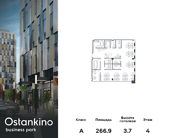 Офисное помещение площадью 266.9 кв.м в OSTANKINO BUSINESS PARK от надежного застройщика PIONEER.