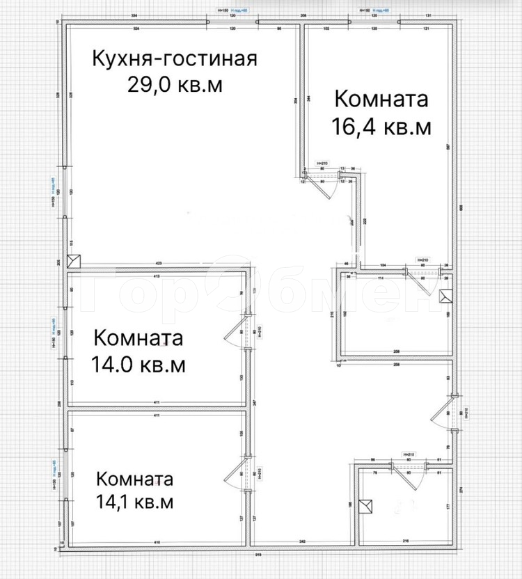 Трехкомнатная квартира площадью 98,4 м² на 23 этаже 49-этажного корпуса.