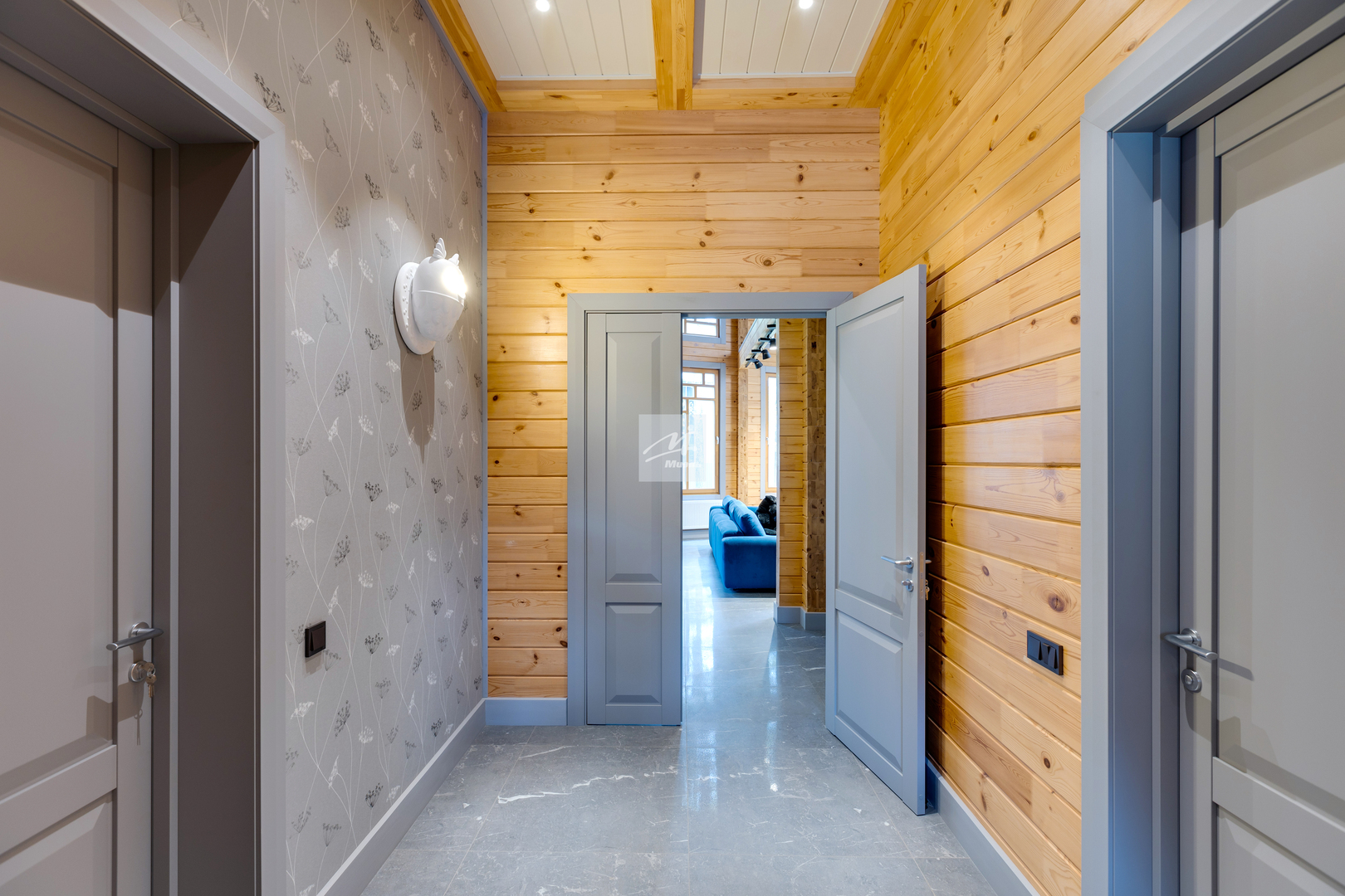 Второй этаж: спальня с эркером, детская комната, спальня, холл с выходом на большую лоджию, санузел с ванной-джакузи, комната свободного назначения.