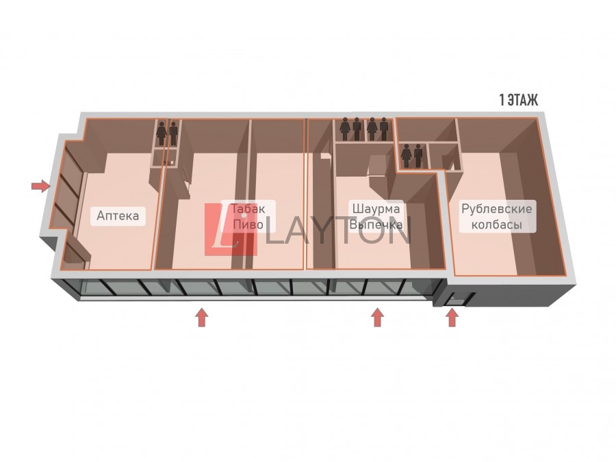 Помещение находится в пристроенном здании, 1 линия, 1 этаж, вход с улицы, большие панорамные окна-витрины. Большая проходимость. Отличные возможности для рекламы. Парковка перед зданием.