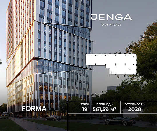 JENGA - новый workplace в районе Покровское-Стрешнево в 1 минуте пешком от станции МЦД «Щукинская». Пространство станет частью развивающейся деловой локации с развитой инфраструктурой и природой в непосредственной близости. Выгода до 25% в декабре. Цена указана при 100% оплате. • Общая площадь - 59 969 м²• Наземная площадь - 54 482 м²• Офисная площадь - 42 588 м²• Количество этажей - 23• Паркинг - 135 мест• Ввод в эксплуатацию - 3 квартал 2028 г.• До станции МЦД-2 «Щукинская» - 1 минута пешком• До станции метро «Щукинская» - 5 минут пешком Преимущества:• 14 минут до Белой площади, м. «Белорусская»• Экологически чистый район с множеством лесопарковых зон• Лобби с lounge-зoнoй, эспрессо-баром, meeting-зoнoй, банкоматами и постаматами• Панорамные виды на парк Покровское-Стрешнево и город