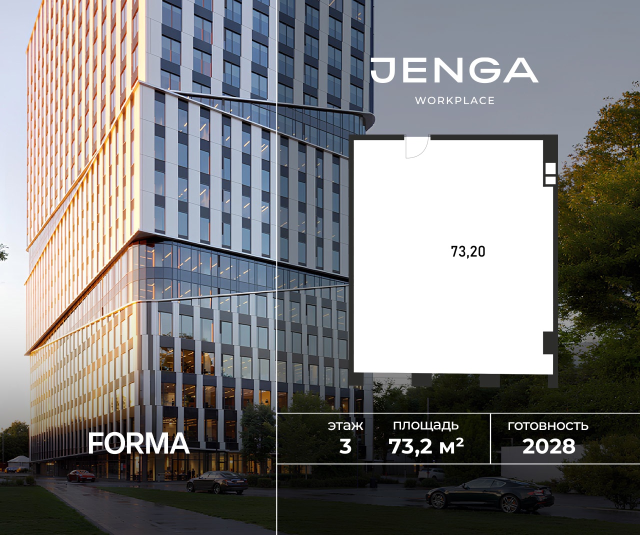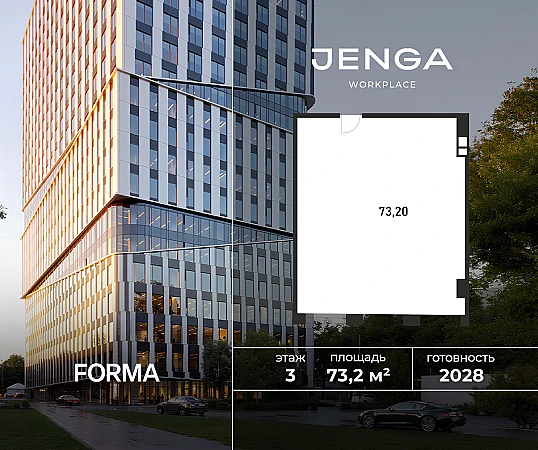 JENGA - новый workplace в районе Покровское-Стрешнево в 1 минуте пешком от станции МЦД «Щукинская». Пространство станет частью развивающейся деловой локации с развитой инфраструктурой и природой в непосредственной близости. Выгода до 25% в декабре. Цена указана при 100% оплате. • Общая площадь - 59 969 м²• Наземная площадь - 54 482 м²• Офисная площадь - 42 588 м²• Количество этажей - 23• Паркинг - 135 мест• Ввод в эксплуатацию - 3 квартал 2028 г.• До станции МЦД-2 «Щукинская» - 1 минута пешком• До станции метро «Щукинская» - 5 минут пешком Преимущества:• 14 минут до Белой площади, м. «Белорусская»• Экологически чистый район с множеством лесопарковых зон• Лобби с lounge-зoнoй, эспрессо-баром, meeting-зoнoй, банкоматами и постаматами• Панорамные виды на парк Покровское-Стрешнево и город