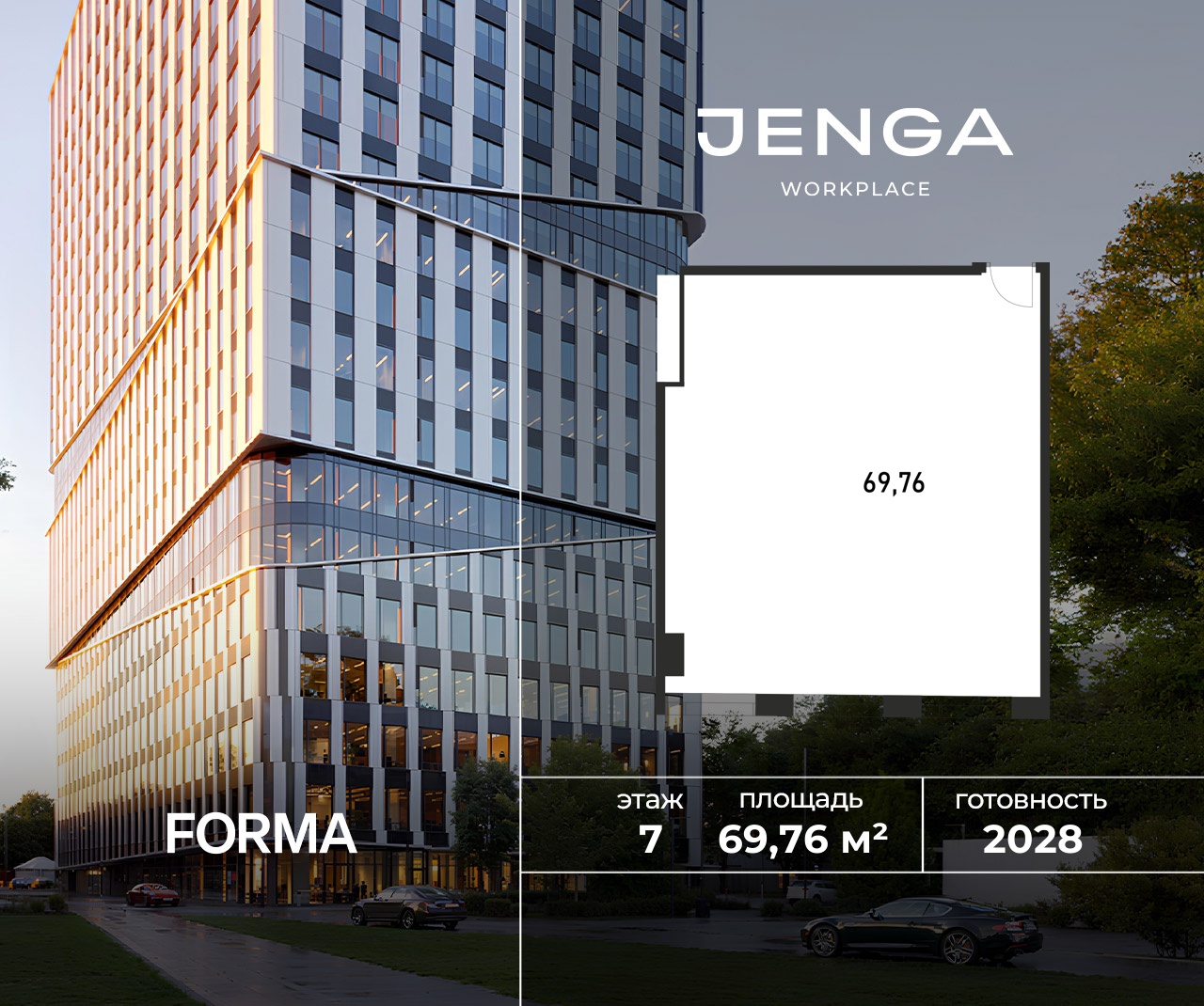 JENGA - новый workplace в районе Покровское-Стрешнево в 1 минуте пешком от станции МЦД «Щукинская». Пространство станет частью развивающейся деловой локации с развитой инфраструктурой и природой в непосредственной близости. Выгода до 25% в декабре. Цена указана при 100% оплате. • Общая площадь - 59 969 м²• Наземная площадь - 54 482 м²• Офисная площадь - 42 588 м²• Количество этажей - 23• Паркинг - 135 мест• Ввод в эксплуатацию - 3 квартал 2028 г.• До станции МЦД-2 «Щукинская» - 1 минута пешком• До станции метро «Щукинская» - 5 минут пешком Преимущества:• 14 минут до Белой площади, м. «Белорусская»• Экологически чистый район с множеством лесопарковых зон• Лобби с lounge-зoнoй, эспрессо-баром, meeting-зoнoй, банкоматами и постаматами• Панорамные виды на парк Покровское-Стрешнево и город