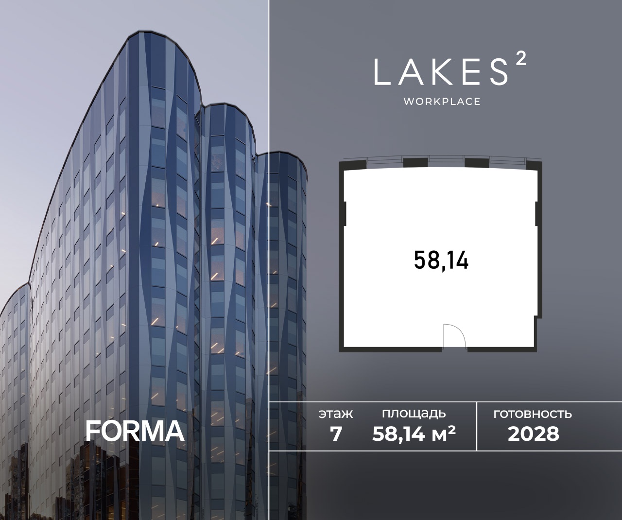 Купить офис 58 м² в БЦ LAKES 2