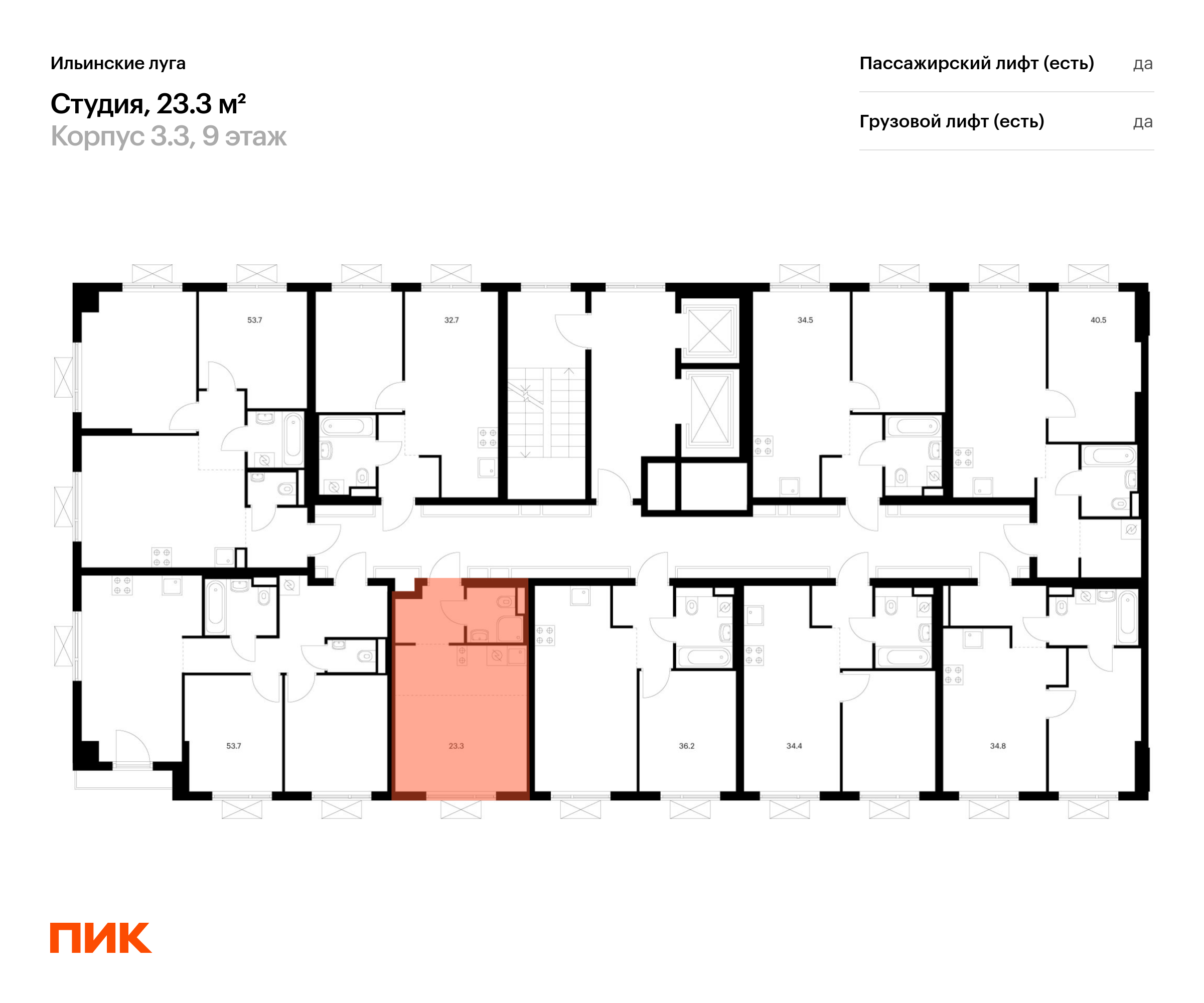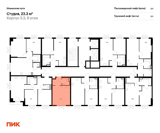 Продаётся квартира-студия площадью 23.30 кв.м на 9 этаже 9 этажного дома (Корпус 3.3, секция 5) проекта ПИК Ильинские луга. Светлый просторный подъезд на уровне земли, функциональная планировка, большие окна, с отделкой.