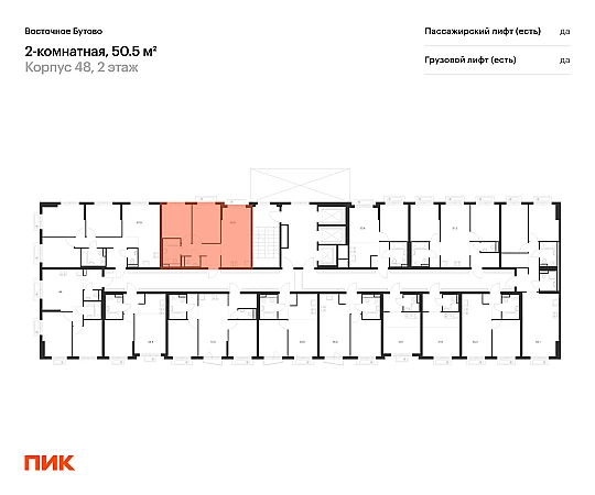 Продаётся 2-комн.квартира площадью 50.50 кв.м на 2 этаже 25 этажного дома (Корпус 48, секция 4) проекта ПИК Восточное Бутово. Светлый просторный подъезд на уровне земли, функциональная планировка, большие окна, с отделкой.