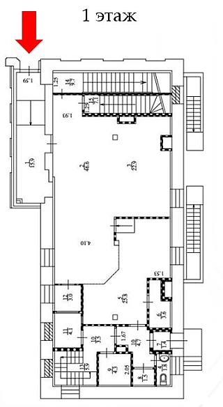 Входная группа: 1 вход с главного фасада, 1 вход с торца здания, есть подъезд для разгрузки, под помещением нет паркинга