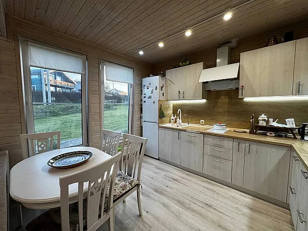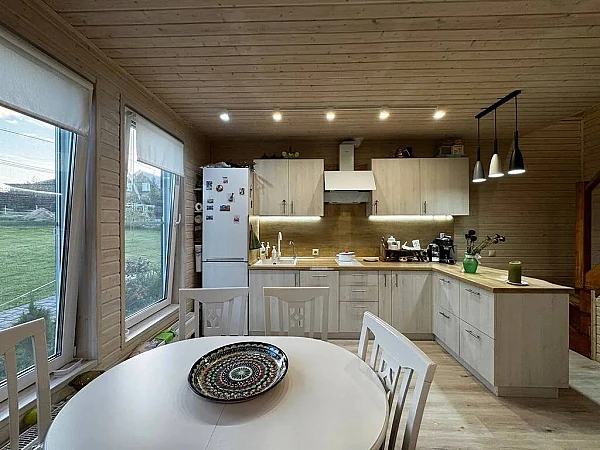 Дом спроектирован с заботой о комфорте и уюте. Он включает в себя просторную кухню-гостиную на первом этаже, где приятно провести вечер с семьей. Кухня, полностью укомплектованная всей необходимой техникой, и 2 комфортные спальни для отдыха на втором этаже одна из которых со своей гардеробной комнатой. В доме оборудованасовременная баня, отдельно душ и с/у.