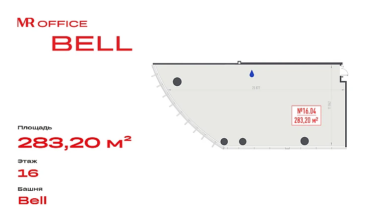 Продается офисное помещение 283.20 кв.м на 16 этаже в новом небоскребе класса Prime — БЦ BELL на Белорусской от бренда MR Office.