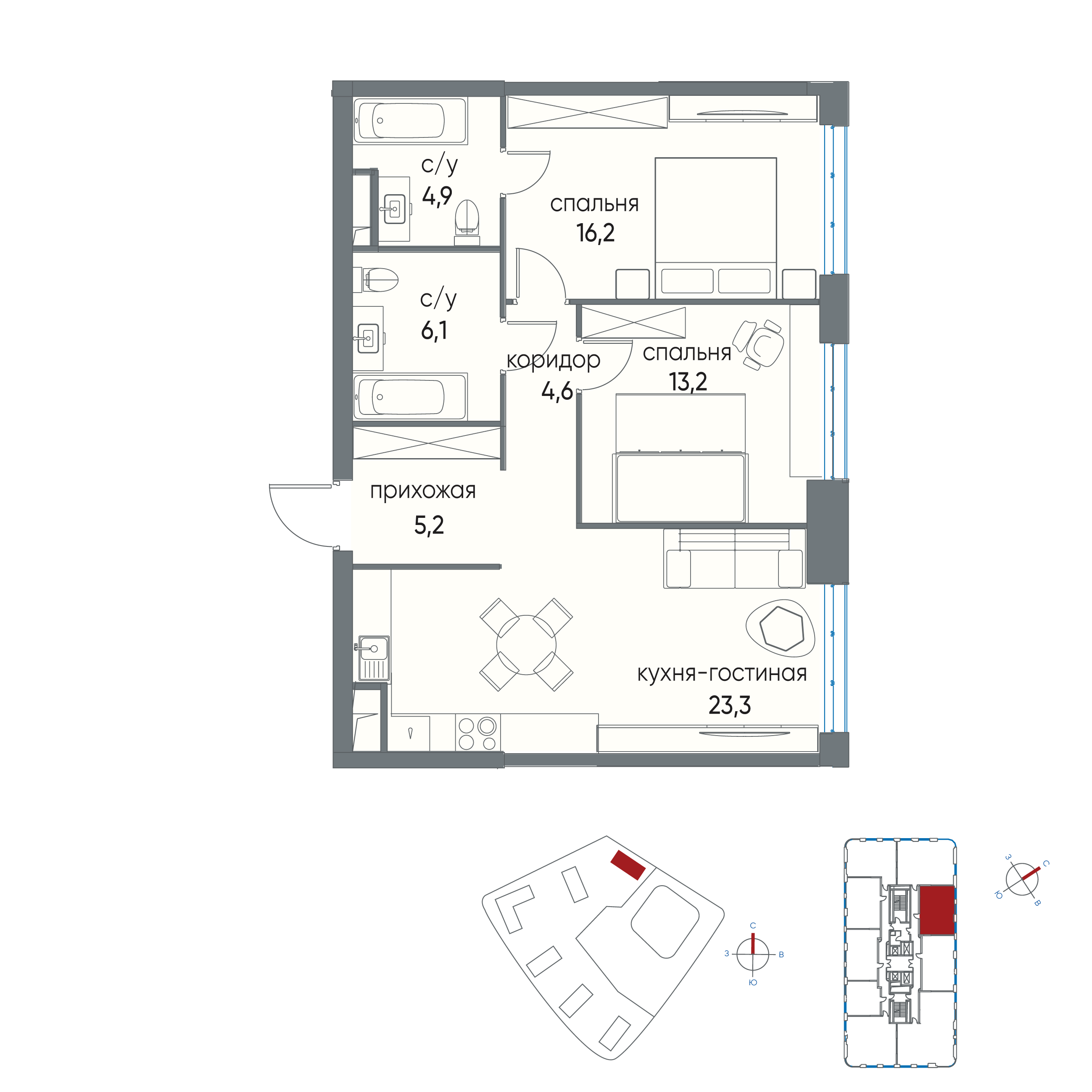 Стоимость квартиры со скидкой 8% при 100% оплате 47286988 руб.