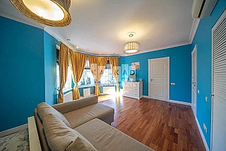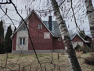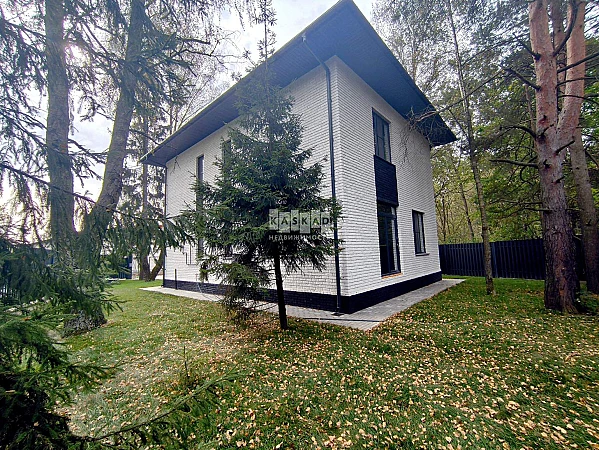 Участок с вековыми соснами, полностью благоустроен (парковка, газон, забор) . Дом построен по современным технологиям с высокими потолками (3.25 м) и панорамными окнами.