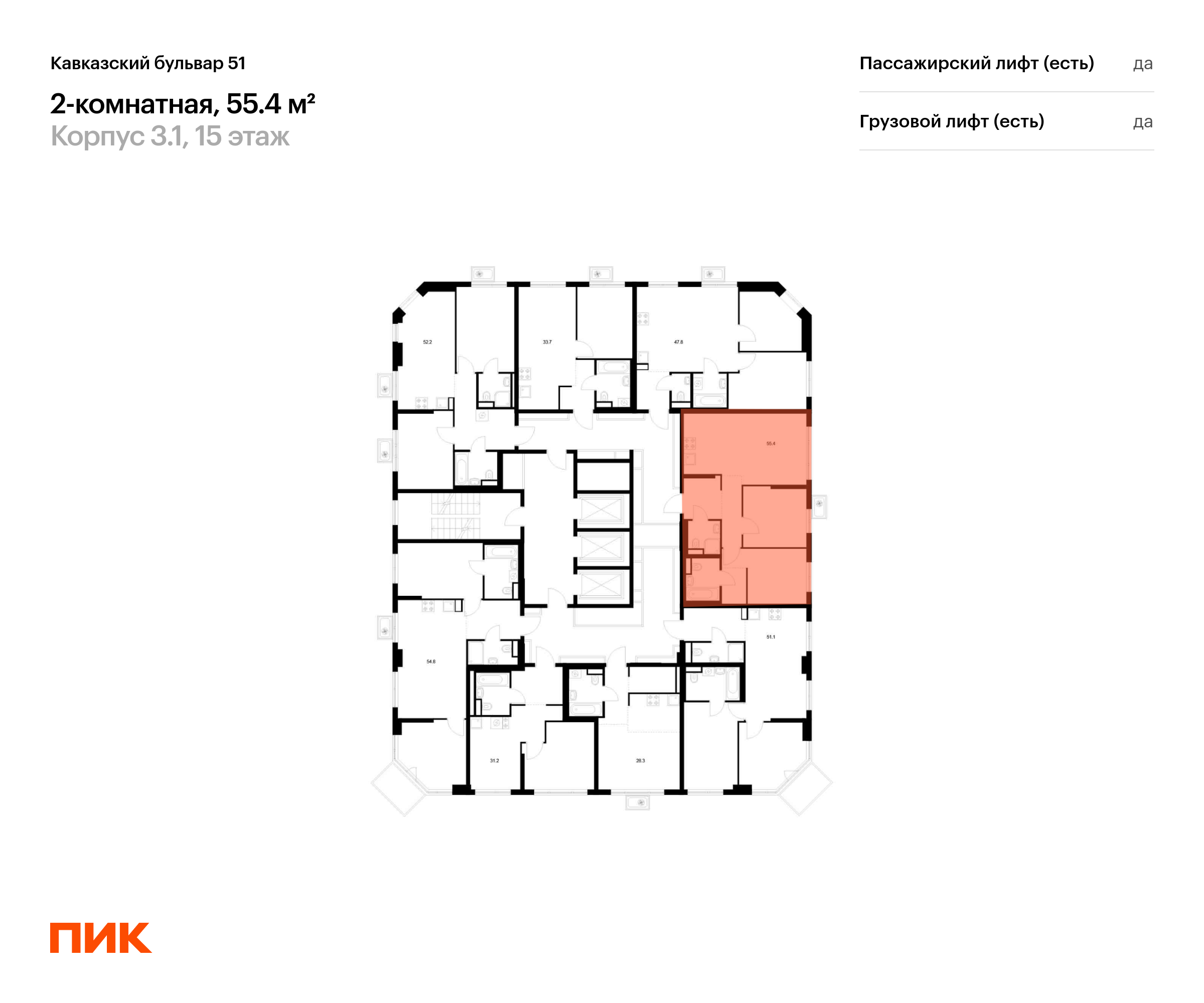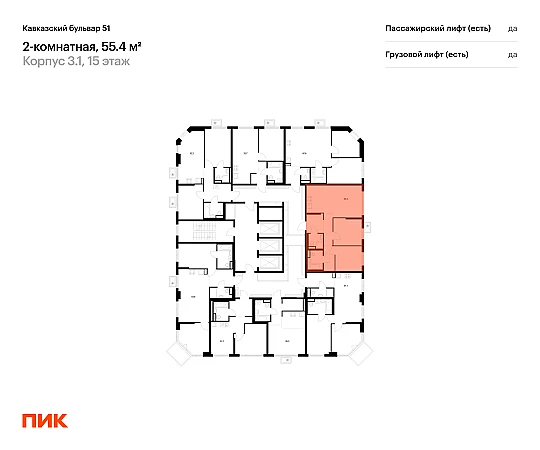 Продаётся 2-комн.квартира площадью 55.40 кв.м на 15 этаже 23 этажного дома (Корпус 3.1, секция 1) проекта ПИК Кавказский бульвар 51. Светлый просторный подъезд на уровне земли, функциональная планировка, большие окна, с отделкой.
