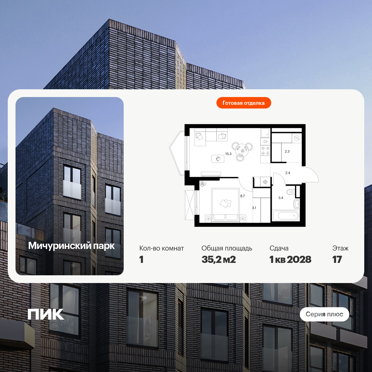 Купить 1к квартиру 34 м² в ЖК Матвеевский парк