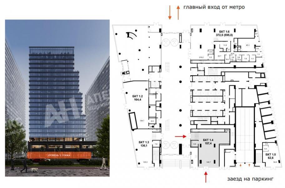 Лот №914731 Сдается в аренду помещение свободного назначения общей площадью 157.4 м². Объект расположен на первом этаже бизнес-центра класса А и имеет открытую планировку. Помещение находится в состоянии Shell&Core, без отделки и мебели, и готово к въезду.