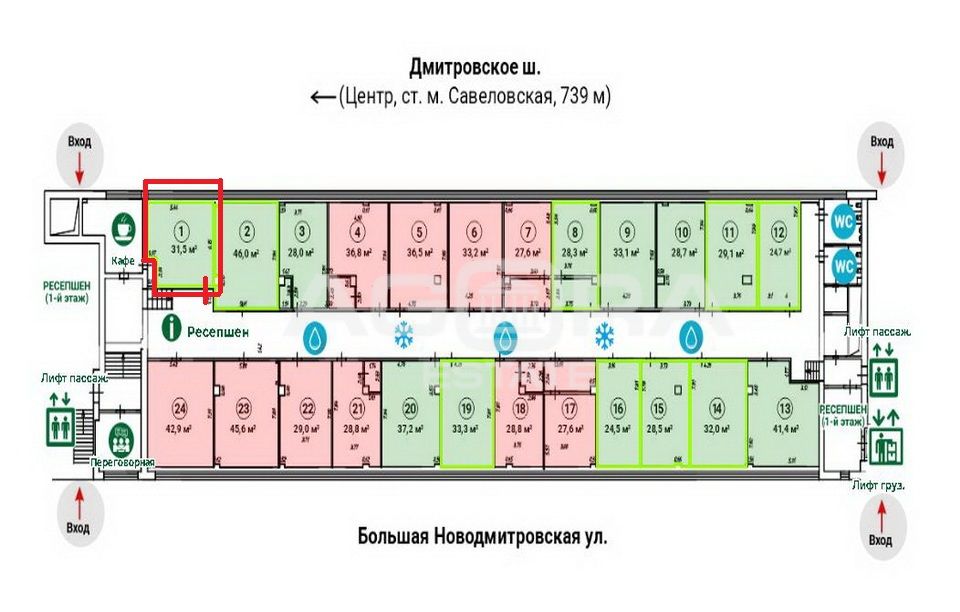 Купить офис 31 м² в БЦ Стрелецкая Слобода