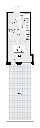 Продаётся квартира-студия, площадью 34,9 кв. м на 2-м этаже дома комфорт-класса в ЖК "Прокшино". Квартира с функциональной планировкой: большие окна, высота потолка 2,99 м, терраса.