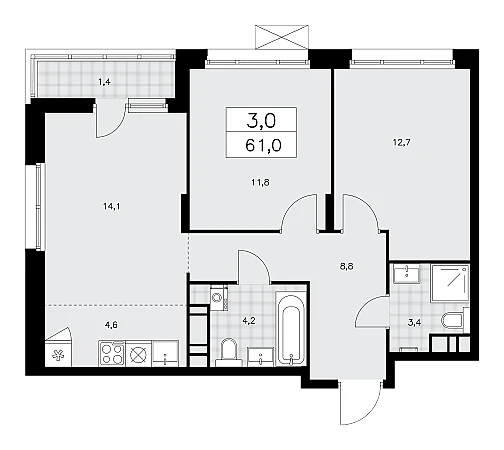 Продаётся 3-комнатная квартира, площадью 60,7 кв. м на 16-м этаже дома комфорт-класса в ЖК "Прокшино". Квартира с функциональной планировкой: большие окна, высота потолка 2,99 м, балкон.