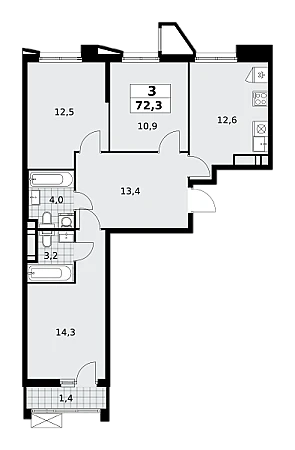 Купить 3к квартиру 72 м² в ЖК Прокшино