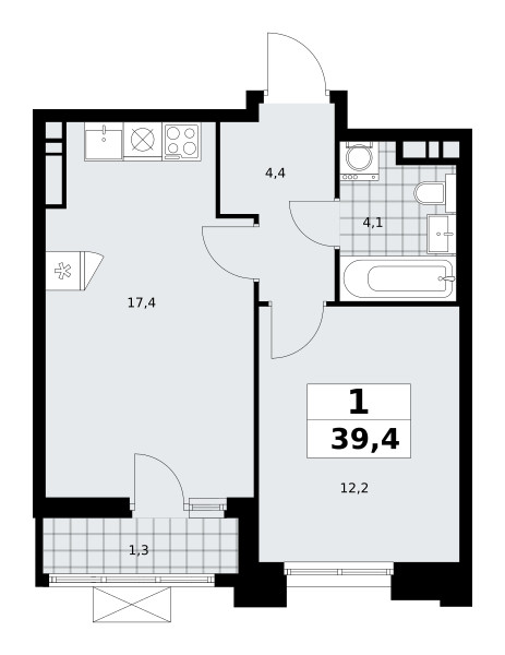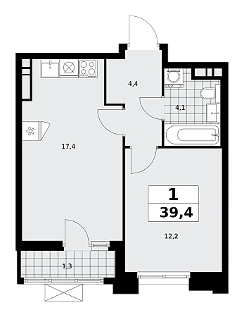 Купить 1к квартиру 39 м² в ЖК Прокшино