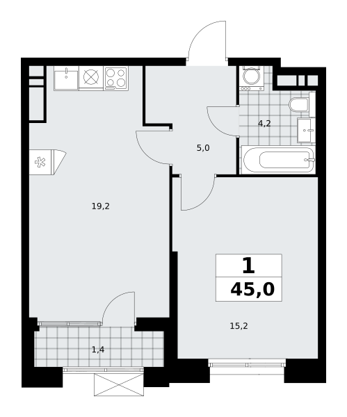 Продаётся 1-комнатная квартира, площадью 45,0 кв. м на 15-м этаже дома комфорт-класса в ЖК "Прокшино". Квартира с функциональной планировкой: большие окна, высота потолка 2,95 м, балкон.