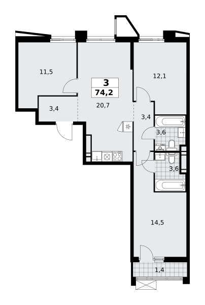 Купить 3к квартиру 74 м² в ЖК Прокшино
