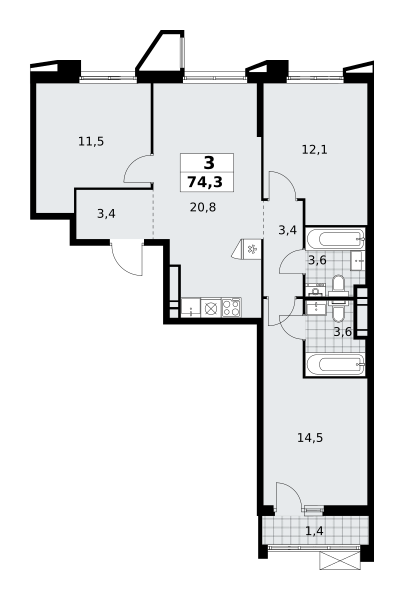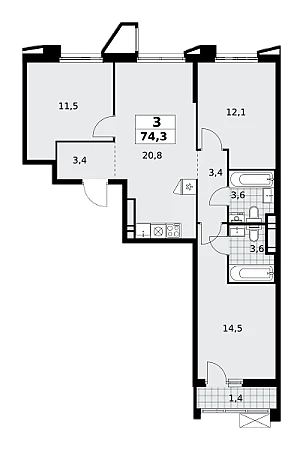 Купить 3к квартиру 74 м² в ЖК Прокшино