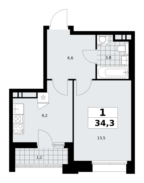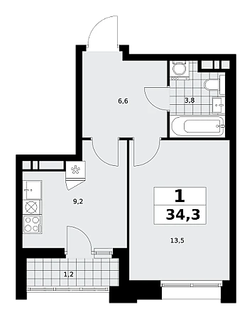 Продаётся 1-комнатная квартира, площадью 34,3 кв. м на 12-м этаже дома комфорт-класса в ЖК "Прокшино". Квартира с функциональной планировкой: большие окна, высота потолка 2,95 м, балкон.
