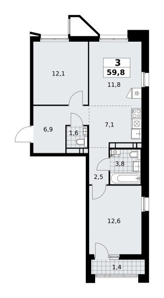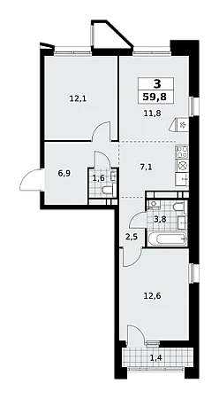 Купить 3к квартиру 59 м² в ЖК Прокшино