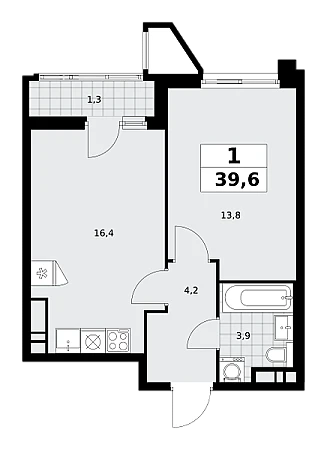 Купить 1к квартиру 39 м² в ЖК Прокшино
