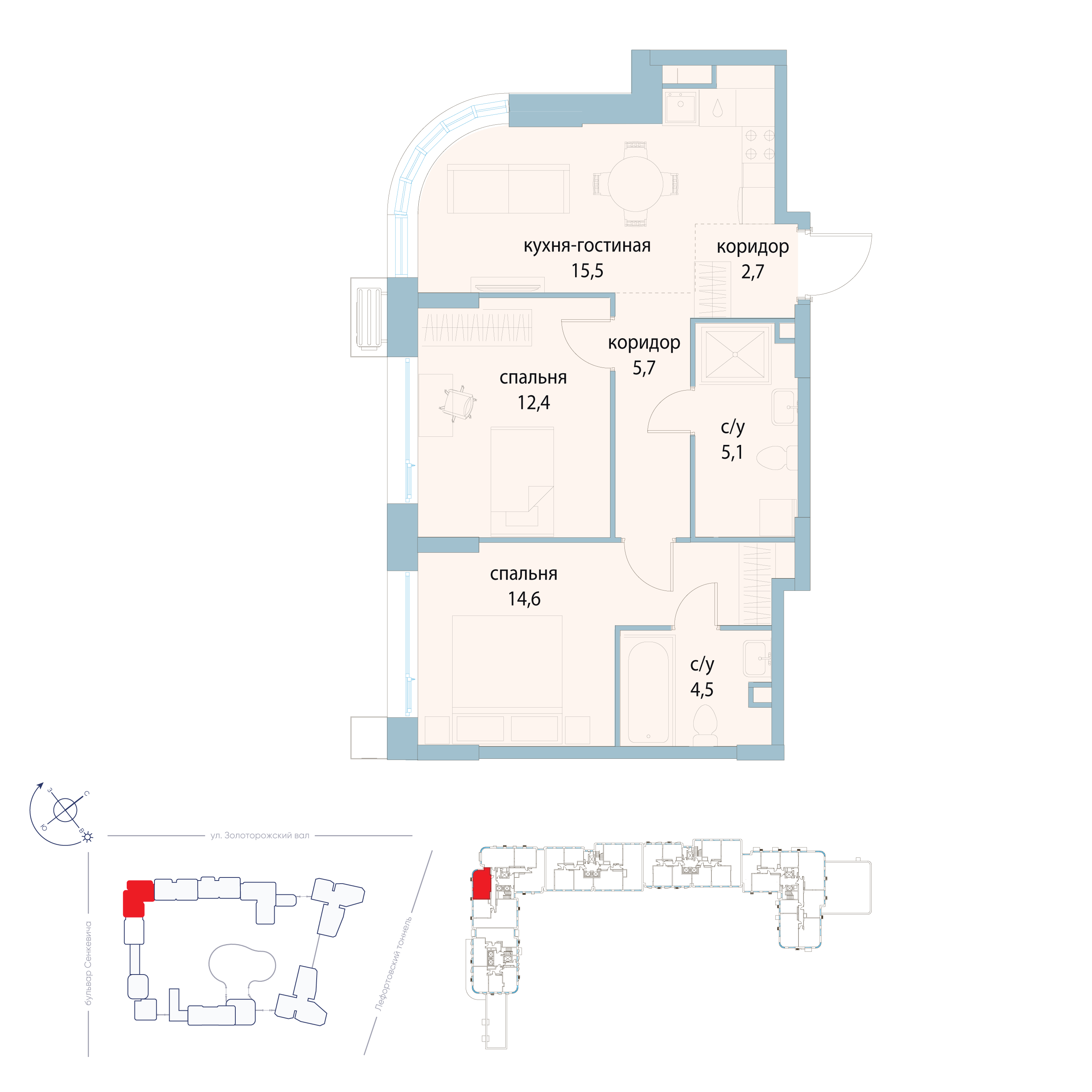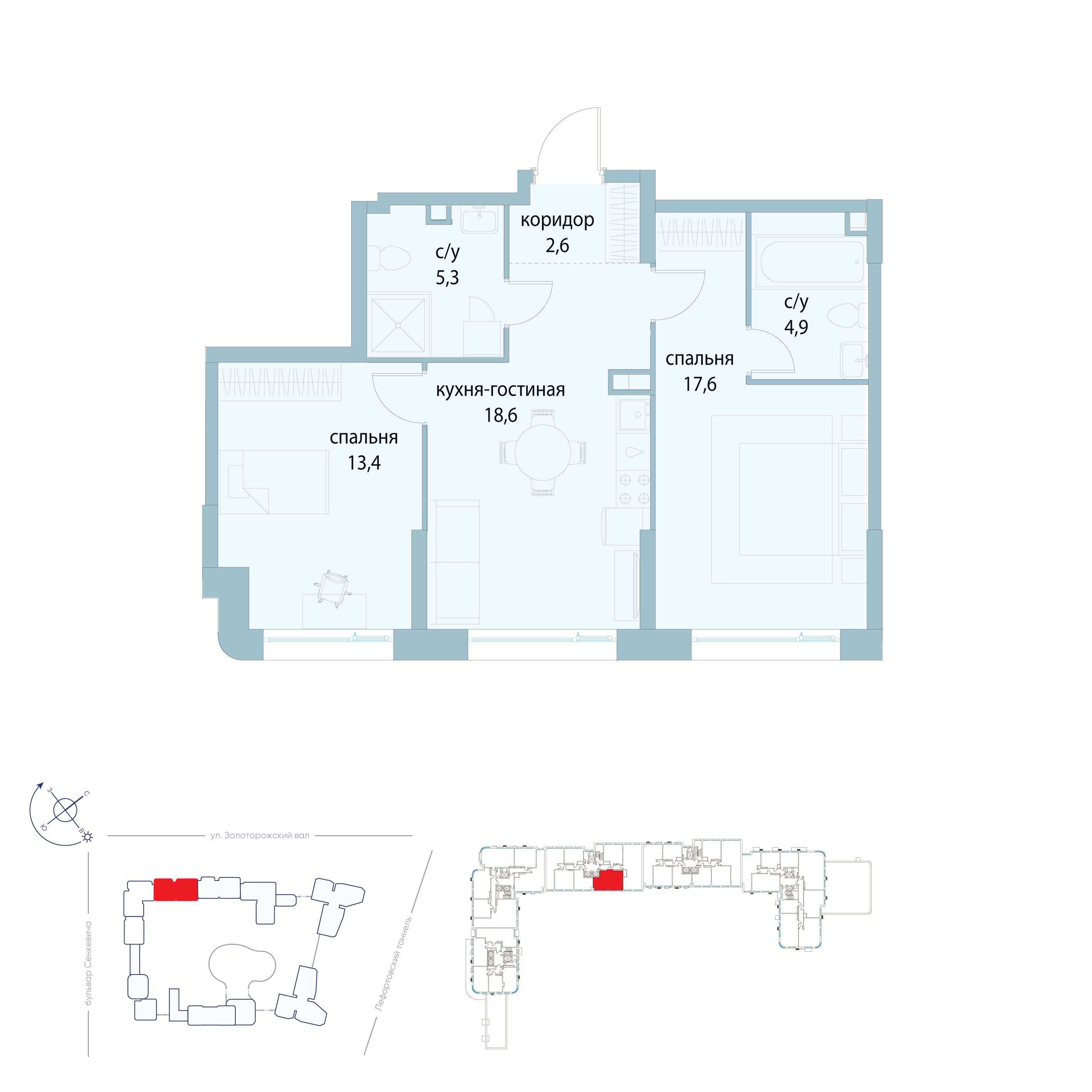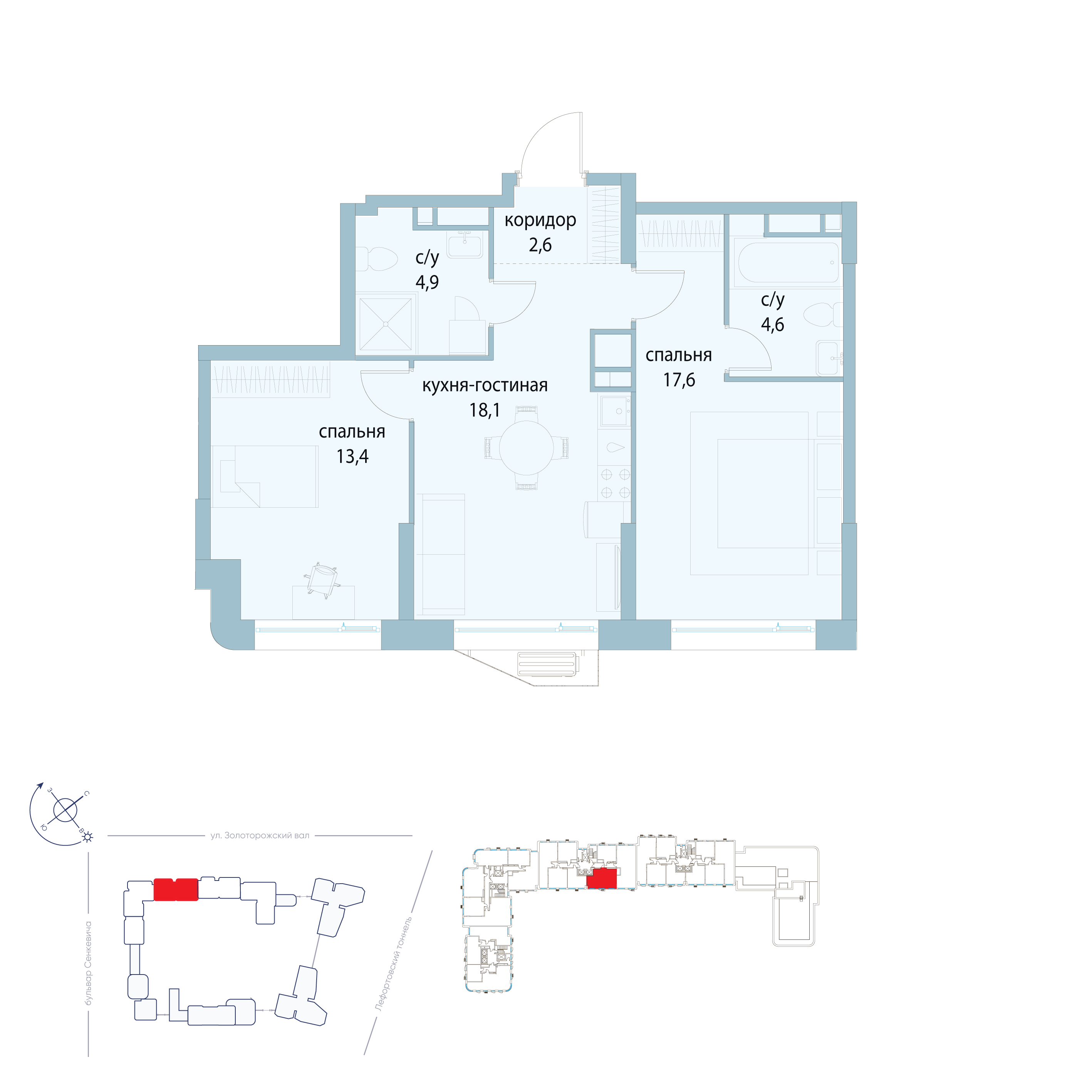 Отделка дизайнерская. Есть варианты квартир с предчистовой отделкой white box и без отделки в других корпусах ЖК.