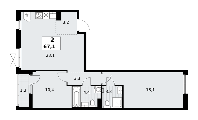 Продаётся 1-комнатная квартира, площадью 53,6 кв. м на 2-м этаже дома комфорт-класса в ЖК "Прокшино". Квартира с функциональной планировкой: большие окна, высота потолка 2,95 м, гардероб, терраса.