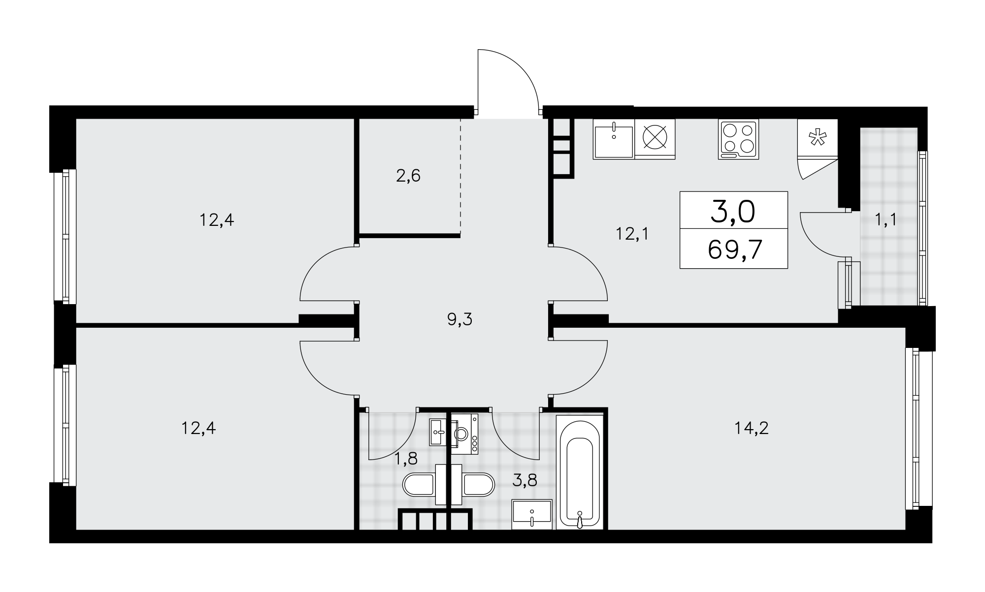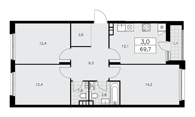 Купить 3к квартиру 69 м² в ЖК Прокшино