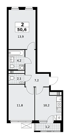 Купить 2к квартиру 50 м² в ЖК Прокшино