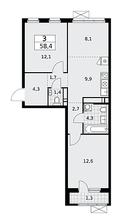Купить 3к квартиру 58 м² в ЖК Прокшино
