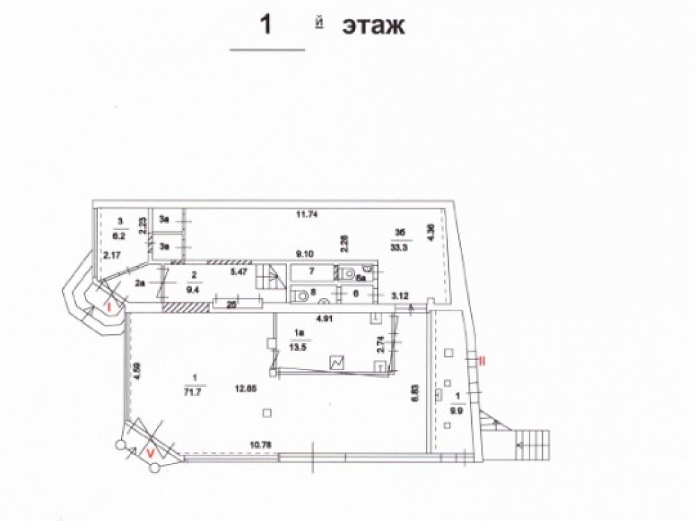 . Помещение площадью 39кв.м расположено на 1 этаже встроено-пристроенной части нежилого 2-х этажного здания.