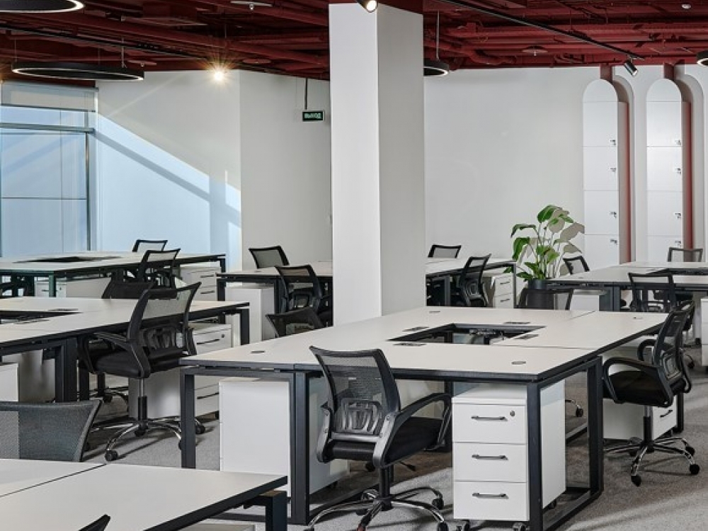 . Аренда мебельного парка для организации (рабочие столы с беспроводной зарядкой и хабом розеток и USB, рабочие стулья);
