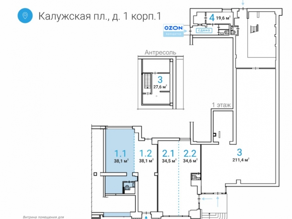 Предлагается в аренду помещение на Калужской площади, ЦАО, г. Москва. Шаговая доступность от ст. метро «Октябрьская» — 1 минута пешком. Отличная пешеходная и транспортная доступность. Помещение на 1 этаже общей площадью 38,10 м2. Подготовлено под чистовую отделку. Помещение расположено в крупном сложившемся жилом районе с высокой плотностью застройки и развитой инфраструктурой. В окружении находятся жилые комплексы «Cult», «Созвездие», большое количество бизнес-центров, Национальный исследовательский технологический университет МИСИС, Российская государственная детская библиотека.