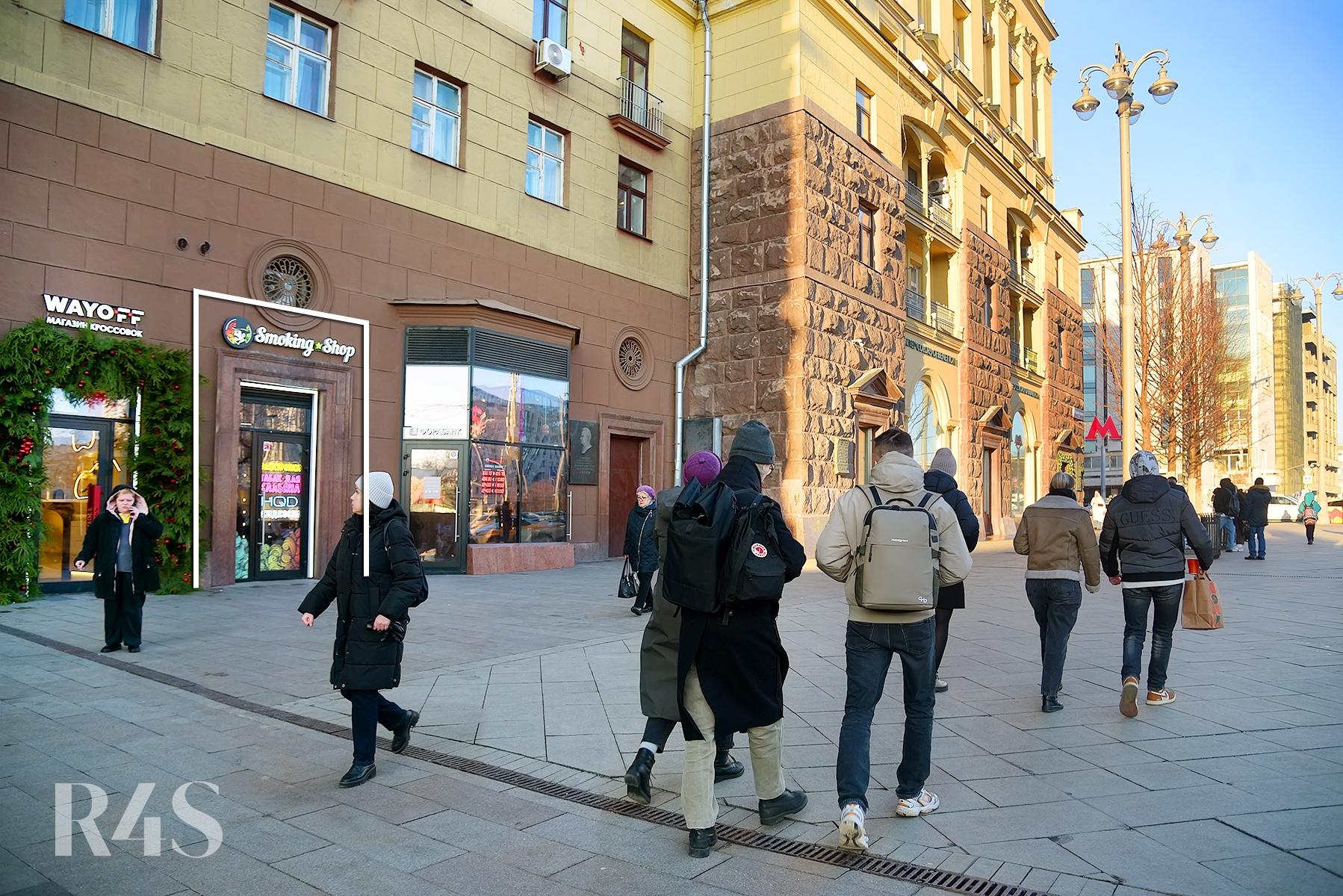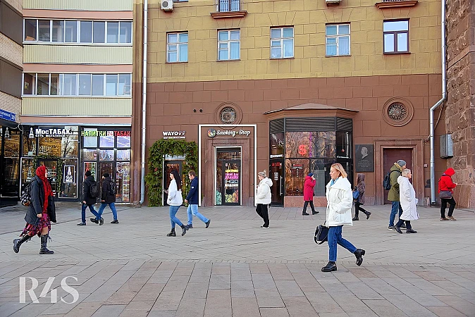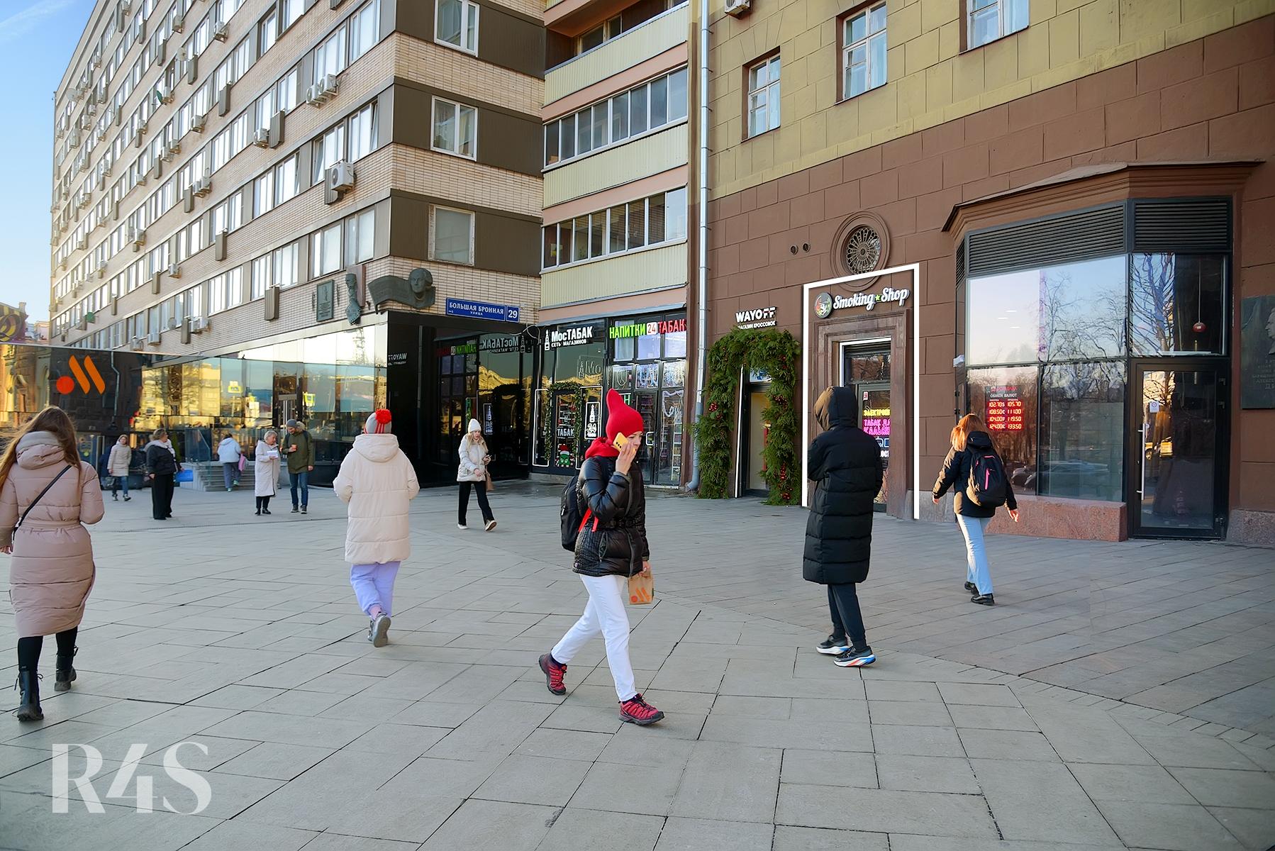 Торговое помещение формата street retail расположено в историческом центре, на главной улице города всего в нескольких шагах от выхода из метро «Пушкинская», на пути пешеходного потока в район Патриарших прудов, по Большой Бронной улице.