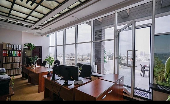 . 4 этаж 4-ех этажного административного корпуса, площадью 355 кв.м. Панорамное остекление, зальная планировка. Электрическая мощность 23 кВт. Высота потолков 4.5 м. Подземный паркинг. Премиальная чистовая отделка: деревянные панели, керамогранит, стеклянные перегородки, широкоформатная плитка, авторское освещение. Планировка без колонн — продуманное зонирование (опенспейс, переговорки, кабинеты, кофепоинт). Полный инженерный комплекс: кондиционирование, вентиляция, авторское освещение.
