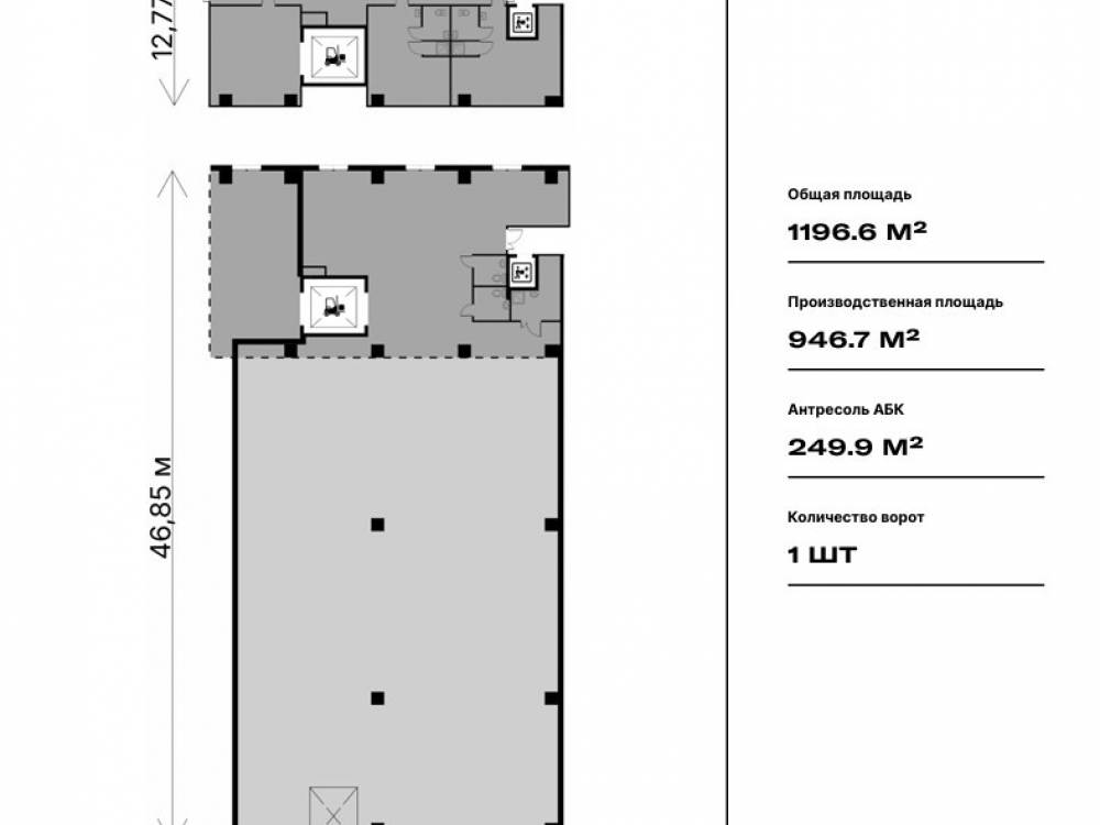 . 4 производственных этажа соединены автомобильными рампами с доступов среднетоннажного автотранспорта на этаж
