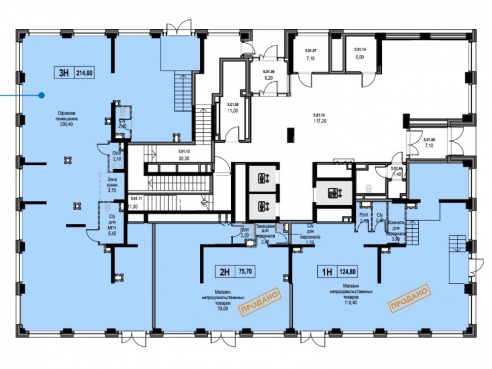 Продажа коммерческого помещения 214 м2 на 1 этаже по адресу: улица Академика Челомея, 1А, корпус 5.
