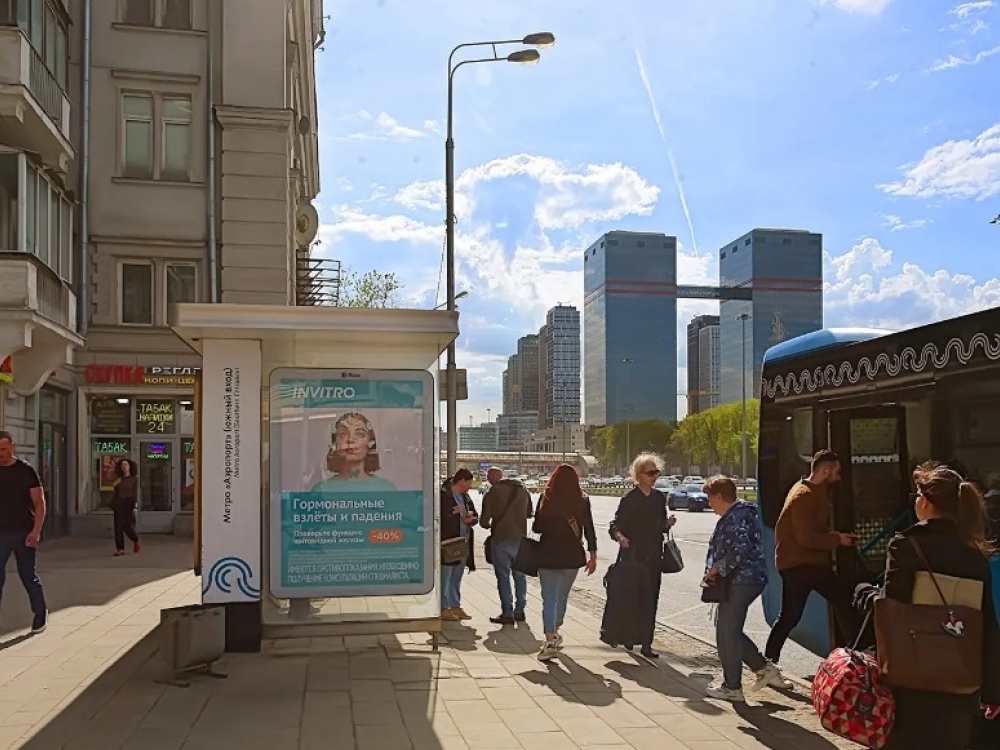 Помещение расположено на первой фасадной линии Ленинградского проспекта. Вход на станцию метро «Аэропорт» находится в одном здании с помещением.