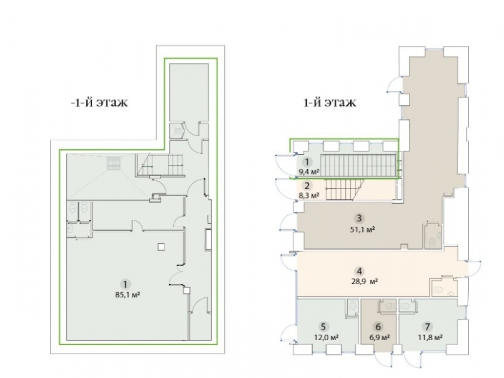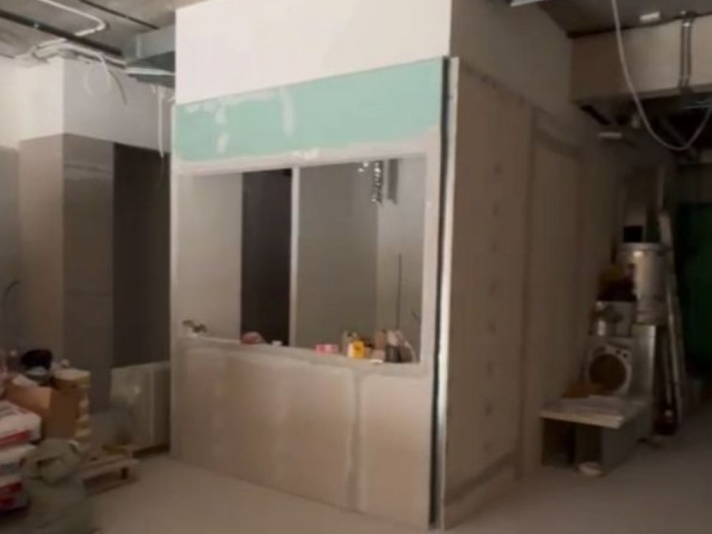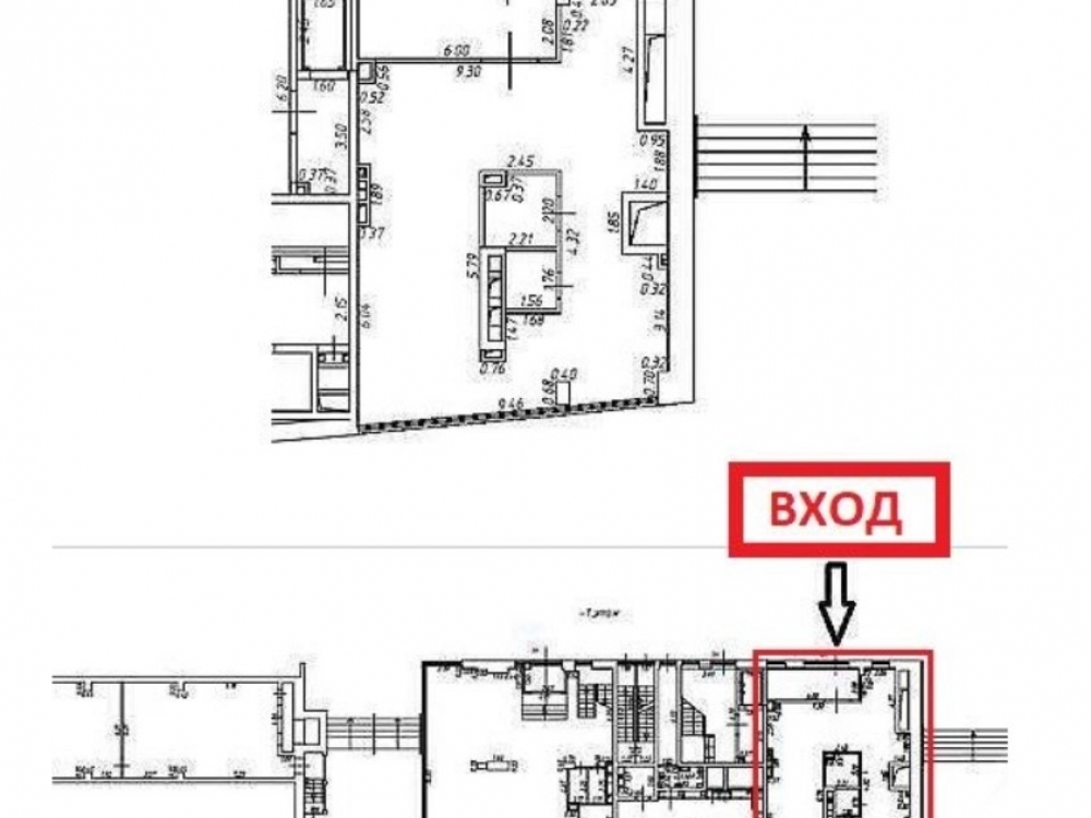 . Первый этаж, витринные окна по фасаду и потолки 4м. Вход с фасада, помещение с черновой отделкой. Выделенная мощность 22квт, возможна установка технологической вытяжки под общепит.