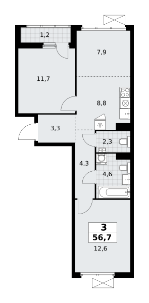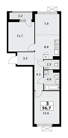 Купить 3к квартиру 56 м² в ЖК Дзен-кварталы