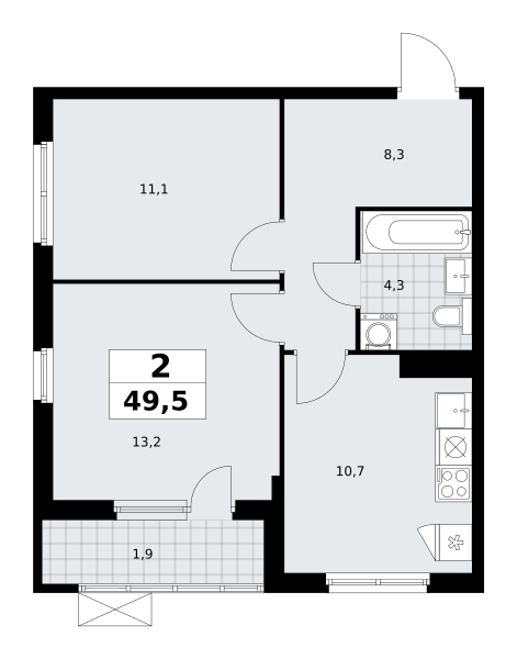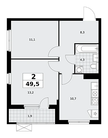 Купить 2к квартиру 49 м² в ЖК Дзен-кварталы