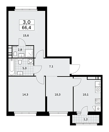 Продаётся 3-комнатная квартира, площадью 66,4 кв. м на 12-м этаже дома комфорт-класса в ЖК "Дзен-кварталы". Квартира с функциональной планировкой: большие окна, высота потолка 2,95 м, балкон, мастер-спальня.