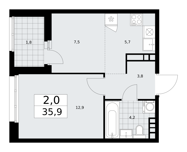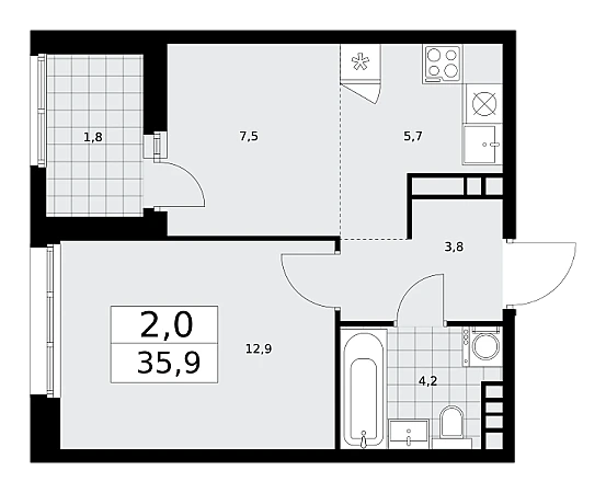 Купить 2к квартиру 35 м² в ЖК Дзен-кварталы