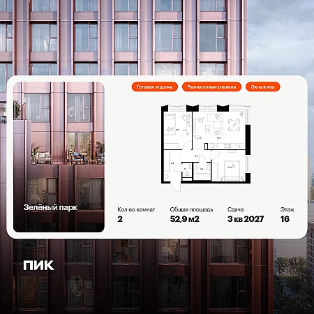 Купить 2к квартиру 48 м² в ЖК Дзен-кварталы