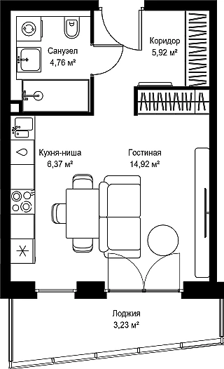 Купить 2к квартиру 48 м² в ЖК Дзен-кварталы